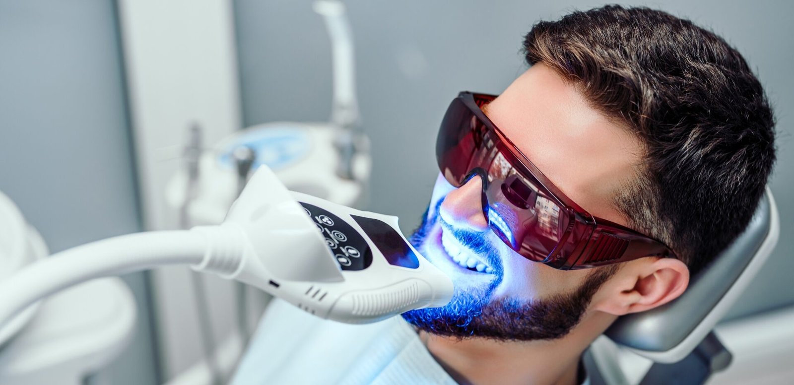 Sanfte kosmetische Zahnaufhellung mit LED-Technologie. Entfernt oberflächliche Verfärbungen und sorgt für ein sichtbar strahlenderes Lächeln – ganz ohne medizinische Eingriffe und sicher für ein natürlich strahlendes Ergebnis.